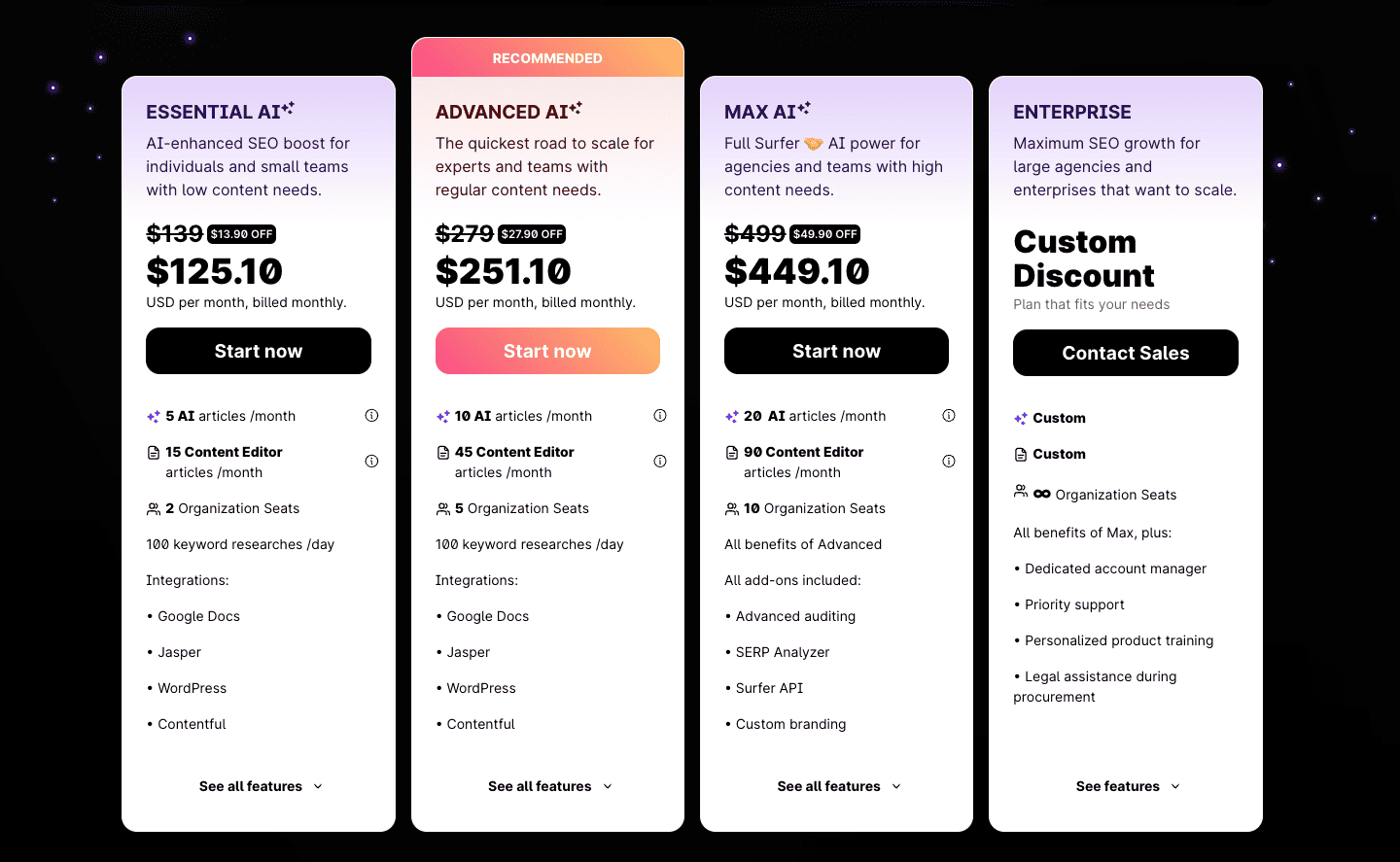 Enterprise: $499/month