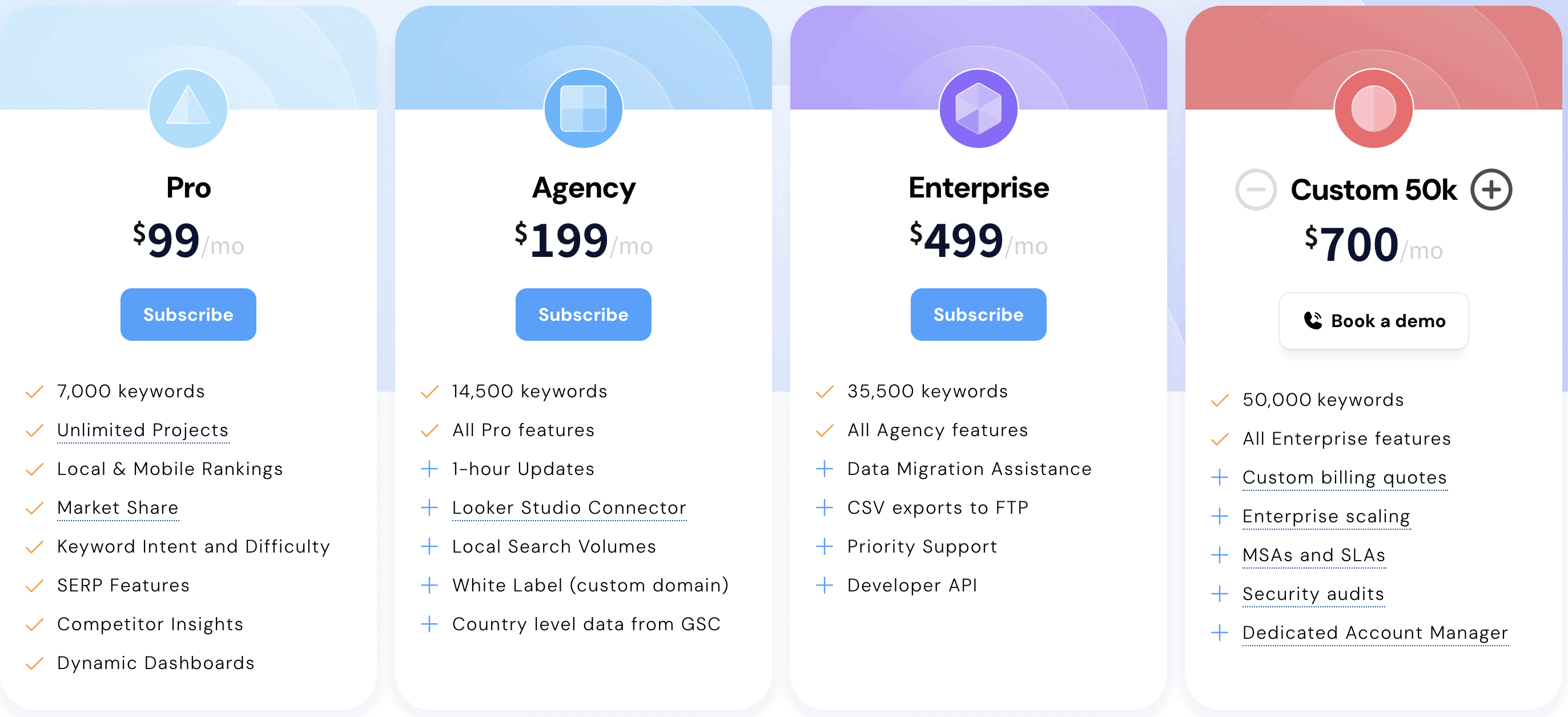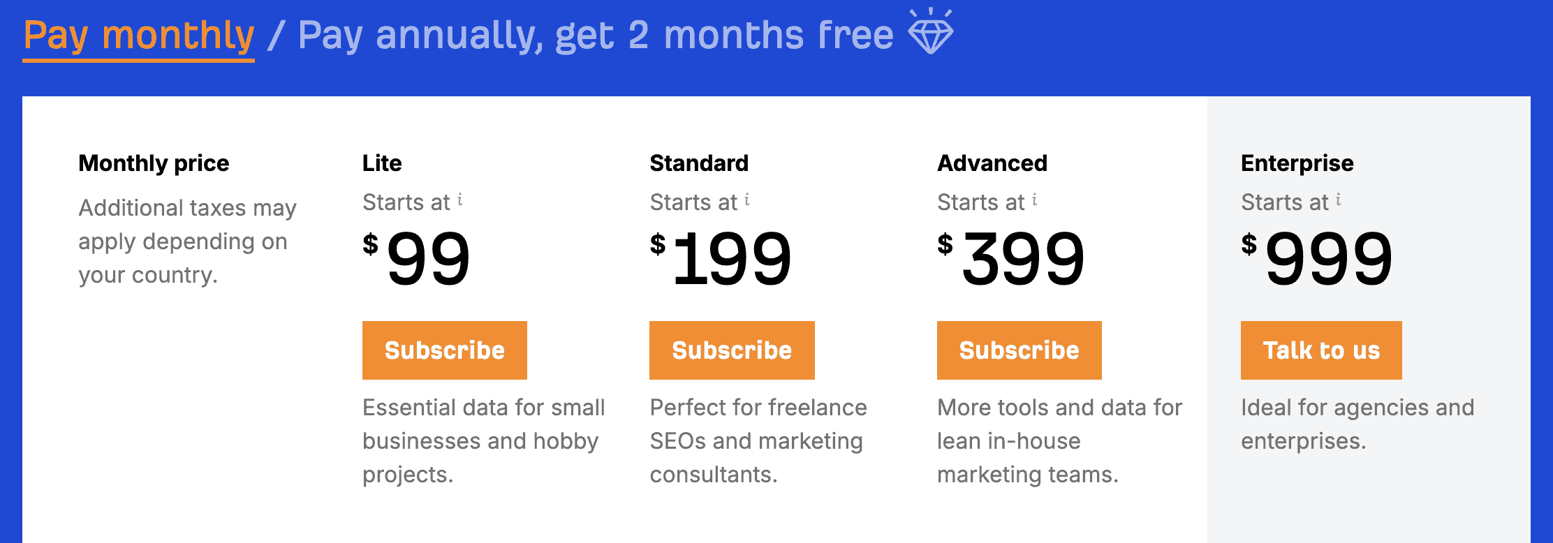 Advanced Web Ranking offers four pricing plans: