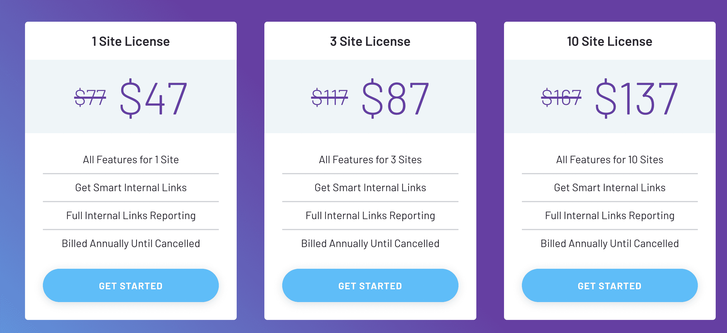 Link Whisper offers four different price plans, depending on how many sites you wish to license.